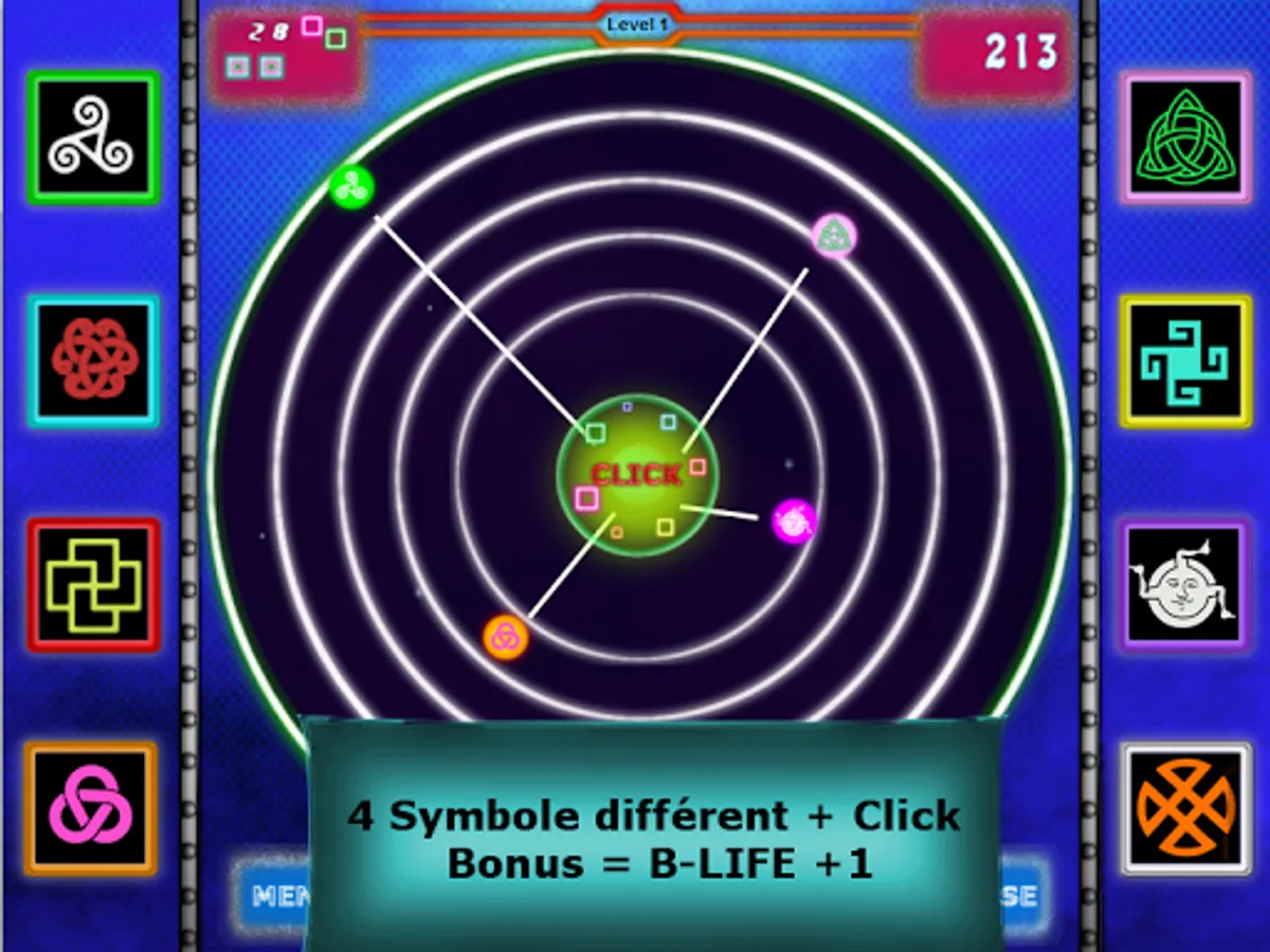 Bursting colorful bubbles with the corresponding thereto keys, each higher level will make the task much harder with increased speed modes.