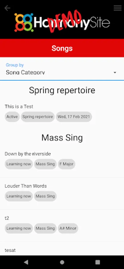 HarmonySite is a website for showcasing and managing a choir, chorus, orchestra, band, club, industry association - or any organisation with members and events (and usually music). This app is a companion app for any member of such an organisation. It contains a subset of the functionality found in the Members Area of such a website - the functionality most needed when you're on the go - and adds some useful extra functionality.