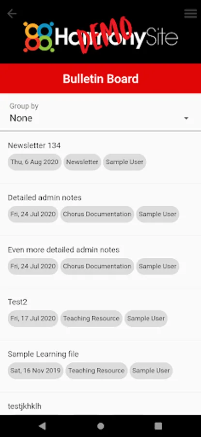 View all items on your HarmonySite's Bulletin Board, Documents list, Teaching Resources, Rehearsal Recordings, etc