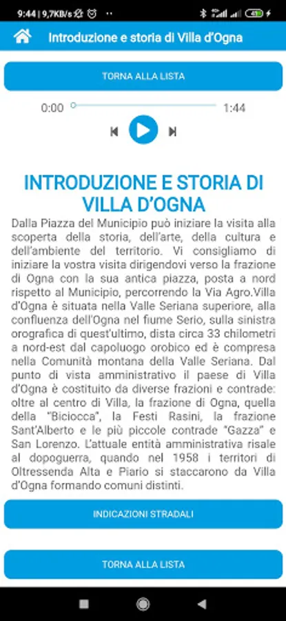 L’app consentirà al turista di scaricare tutta una serie di contenuti audio, fotografici e informativi sui territori del Comune di Villa D’Ogna, soprattutto legati al percorso turistico di tipo naturalistico, rurale, culturale ed enogastronomico. L’app ha dei contenuti a supporto in lingua italiana e inglese per illustrare le caratteristiche più significative del percorso. Lo sviluppo dei contenuti caricati sull’app, crea un “viaggio sensoriale ed emozionale” a supporto dell’informazione turistica territoriale, accompagnando il fruitore attraverso audio, fotografie e testi di approfondimento dei luoghi più significativi, dando informazioni generali e informazioni pratiche.