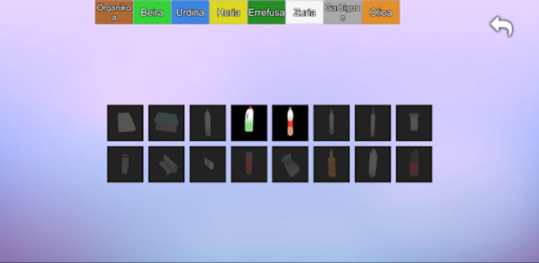 Each game provides the user with detailed information and explanations, thus providing qualitative information on proper recycling. This video game is made up of 4 different worlds, with about 20 games in each world. In addition, each world is located in a popular tourist area of Bilbao.