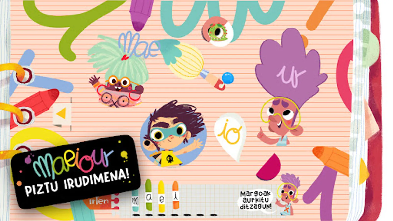 In a fun and easy way, everyone at their own pace, playing small and intuitive games, will find surprises among the cartoons and along the way will play in Basque, learning new names and concepts.