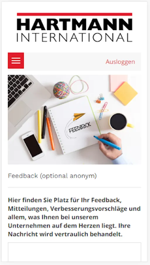 Hartmann employee app for use by employees of Hartmann International Systemlogistik GmbH & Co. KG
