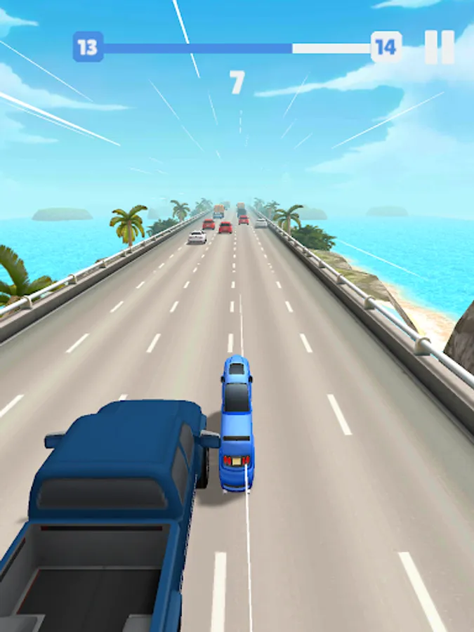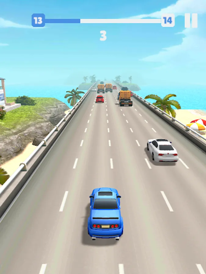 Use your finger to control your car, move your finger to the right and left. Narrow enough to get into two cars. Move your finger forward and make a Jelly Car effect to speed up your car. Earn money through levels, buy new cars with the money you earn.