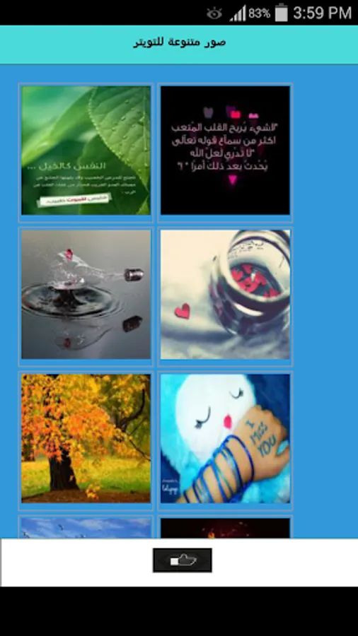 كل ما هو جديد ومميز من اروع الصور الجاهزة لكي تشاركها على تويتر مع الاصدقاء تجدها في هذا التطبيق.