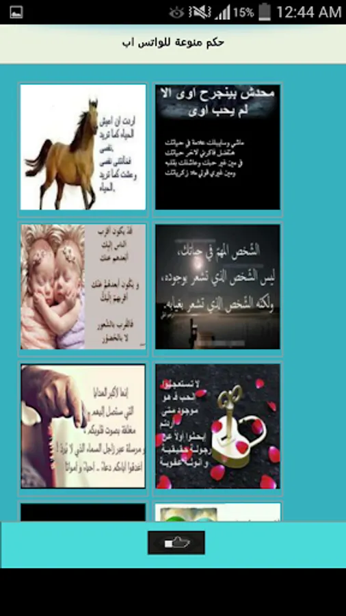 يضم هذا التطبيق اشهر واجمل الحكم المميزة والجاهزة للمشاركة عن طريق الواتس اب.