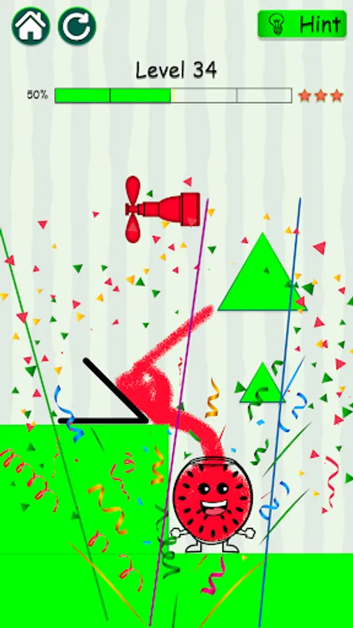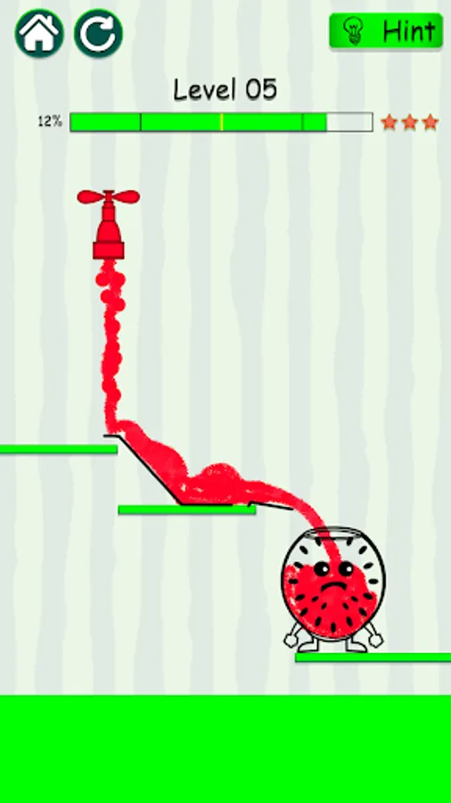 Draw a line and make way for the red watermelon juice to fill up the crazy watermelon and make it happy. Happy watermelon will be shown when the happy glass type is full.
