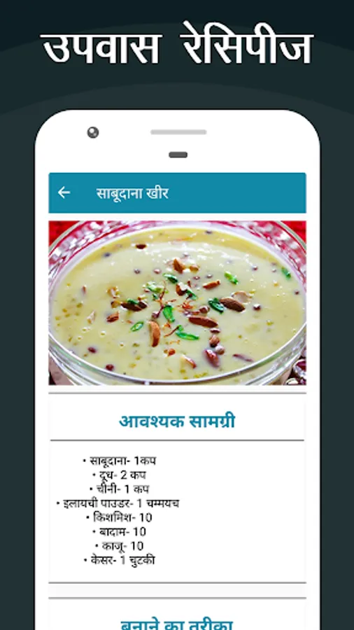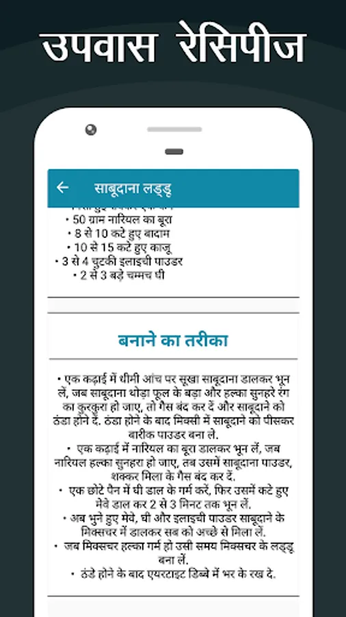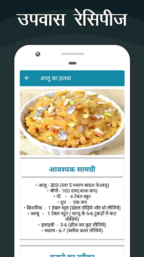 Fast Recipes application describe many farali, vrat and upvas recipes in hindi language.