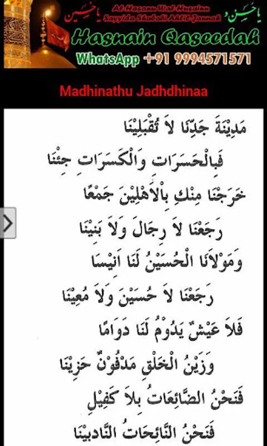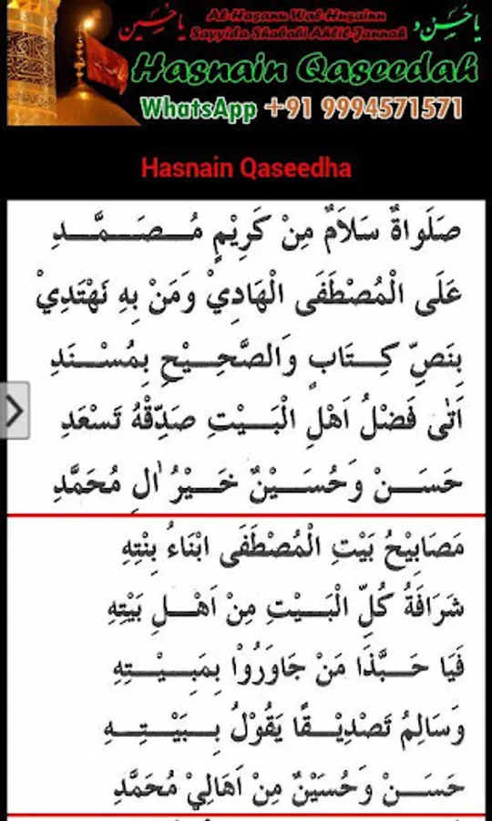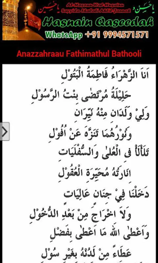 This is our small effort for to give rare collections Holy Hasnain Qaseedah (Marsiya Of Imam Hasan and Imam Hussain), Anazzahra Baith, Fathima Ya Fathima Baith etc . Both Sunni Muslims and Shia Muslims brothers and sisters download it.