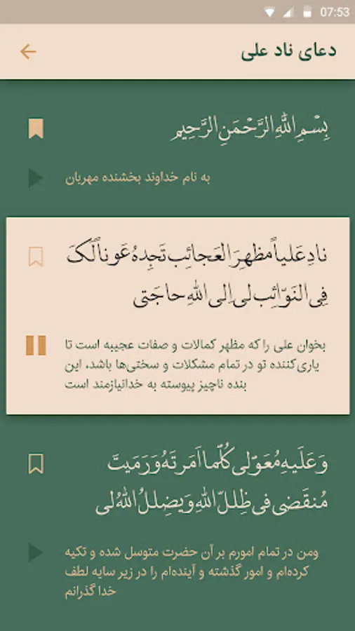 Recitation of each verse with the ability to move the text automatically