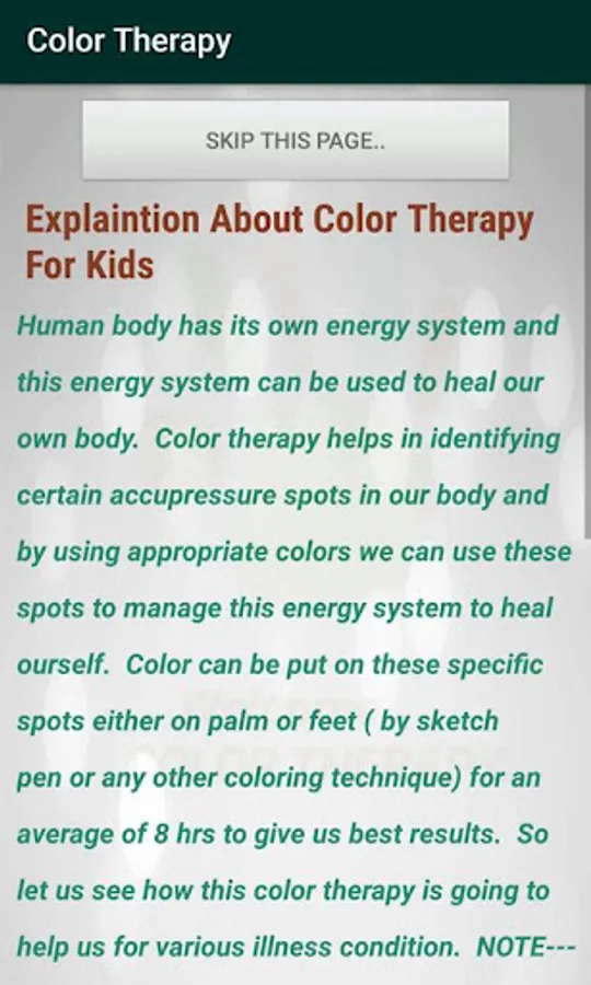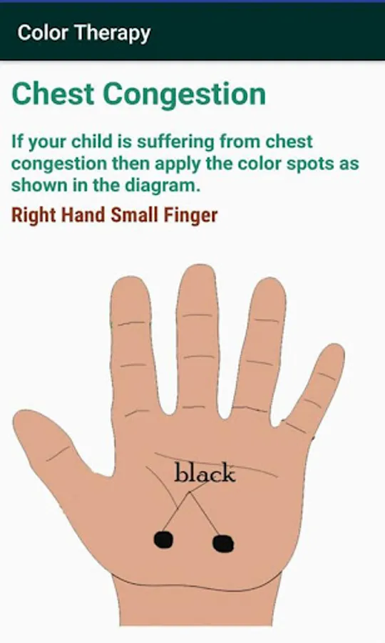 This App will tell about different acupressure points for different illness in kids. This app is handy to be available to you always and to apply the colors on kids palm.