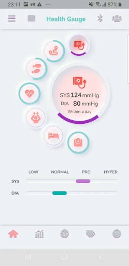 Health Gauge is a personal health monitoring and management platform that deepens your understanding and engagement with your health. The mobile application works with a wearable device that tracks blood pressure, heart rate and other data.