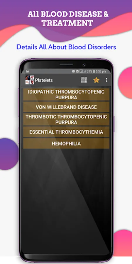 The all blood disorder & treatment app is made for disease diagnosis,blood check up,treatment and prevention of blood related disease.