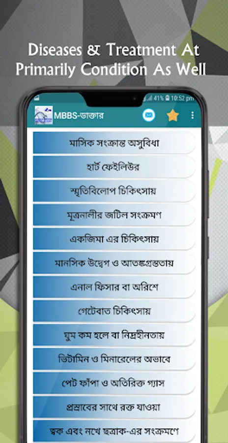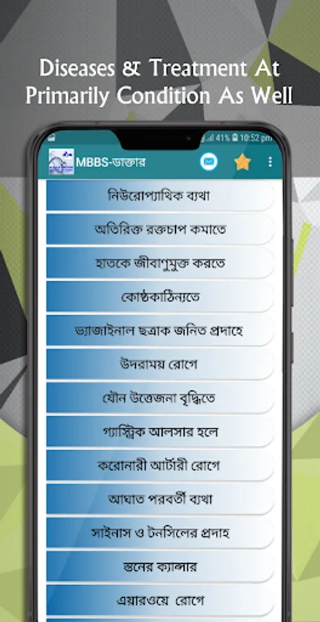 এই অ্যাপটি তে যে সকল রগের চিকিৎসা দেওয়া হলো