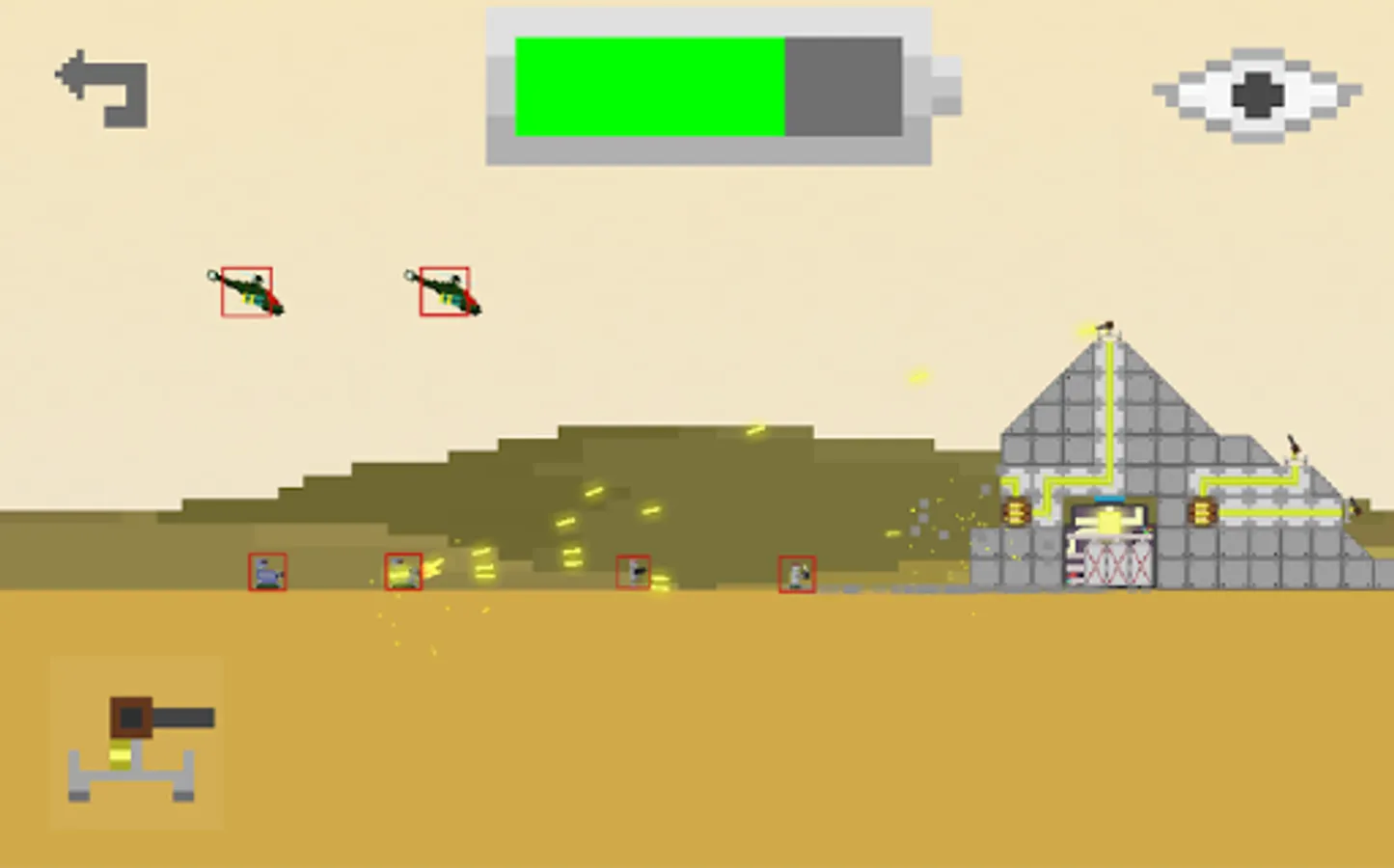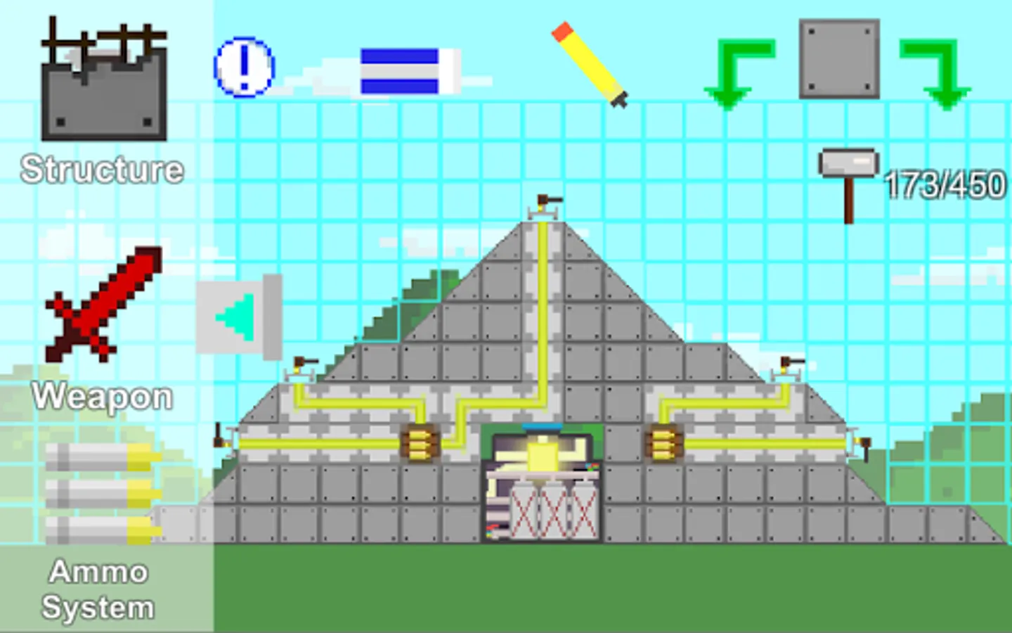 This game uses pixel art to represents different blocks, enemies with different texture. Why pixel art you may ask? We found that pixel art and pixelish particle effects works the best on the appearance of building and destruction. The last reason is it can save the performance of the game especially on mobile where memories and processing power is limited.
