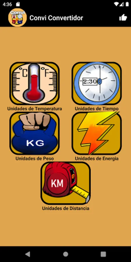 "Convi Convertidor" es una calculadora de unidades practica y simple en donde puedes ver conversiones de distintos tipos de unidades de distancia, peso, tiempo, temperatura y de energía; y a futuro tal vez otras más. Tiene un diseño agradable e intuitivo en donde podrás ver de manera directa conversiones como de metros a yardas entre otras.