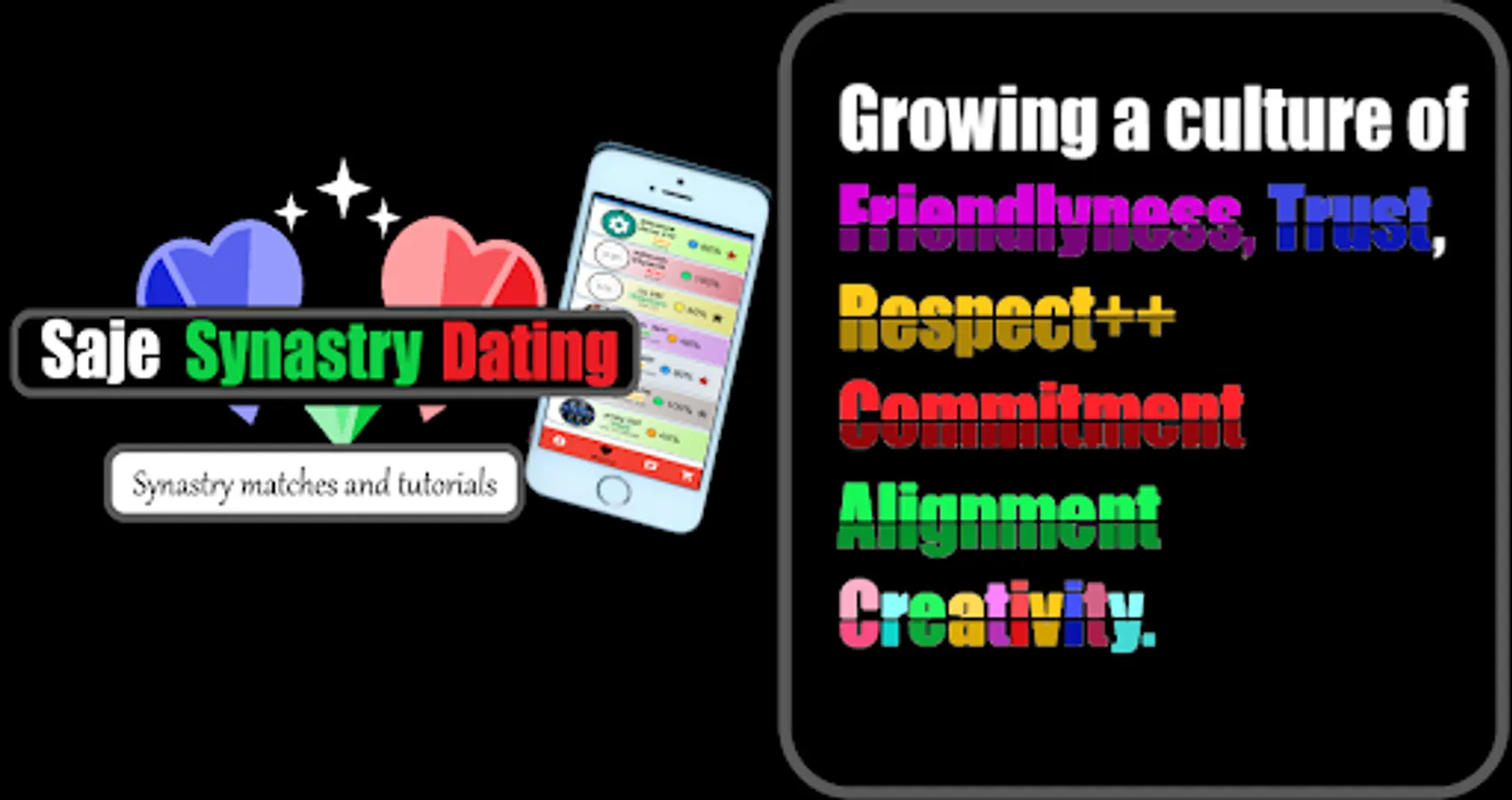 Saje Synastry is an astrology dating app whose main goal is to remove the guess work, the hurt, waste of time, waste of money in finding your love matches. Finding the right person shouldn't be daunting, frustrating and demoralizing and painful. We want you to connect with your right match, at the right time, right from the start.