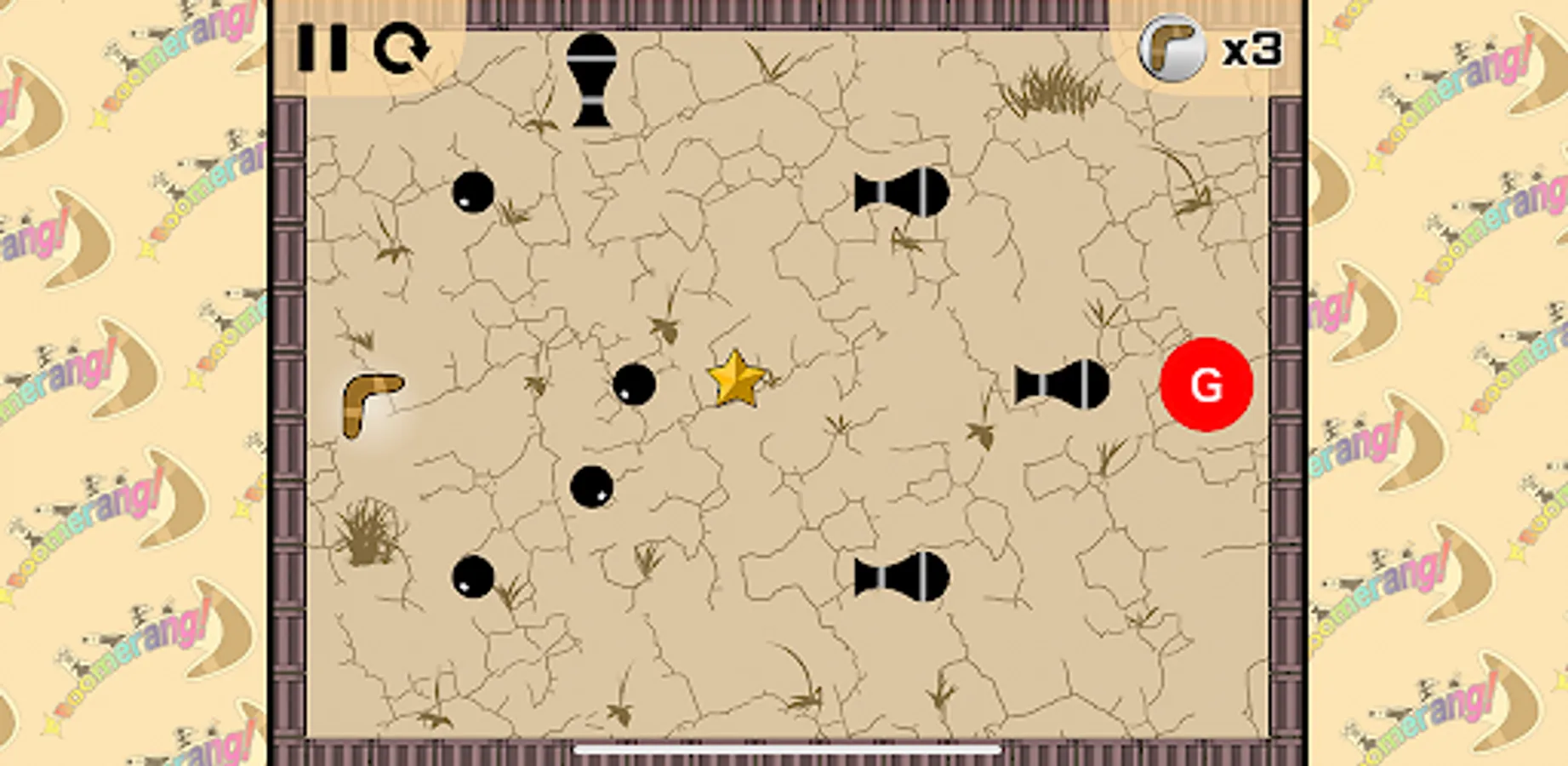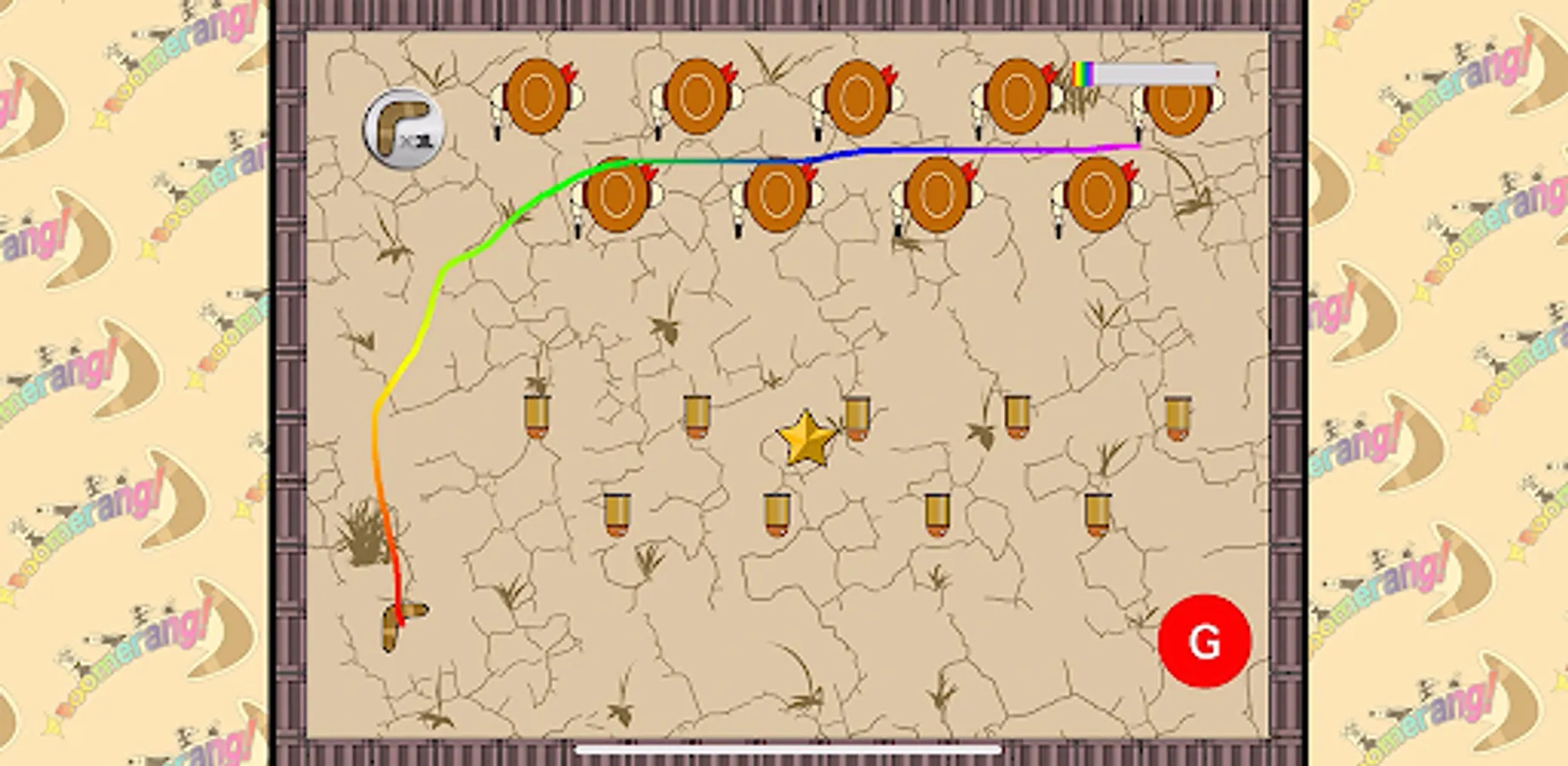 Draw a line and lead the boomerang to the goal, action puzzle Boomerang!