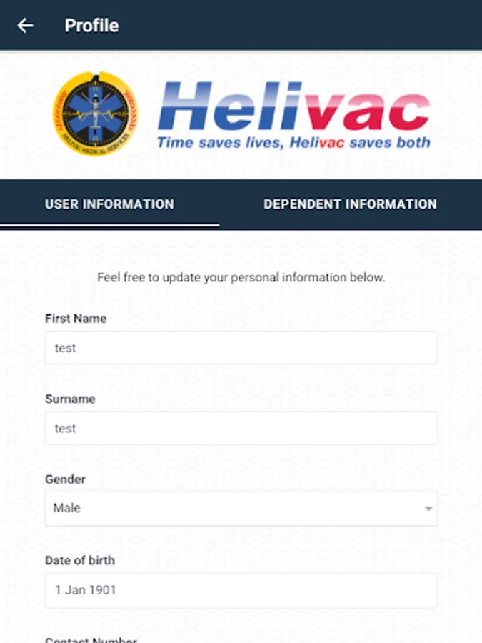 The Helivac Mobile App incorporates a PANIC button, allowing our members to use their mobile device in an emergency as a tool, giving the Helivac Emergency Centre your GPS coordinates. On a day to day basis, the Helivac App is a portal to manage your membership properly, and be abreast of our weekly news.
