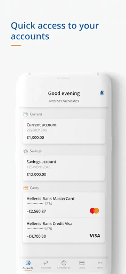 • Contact Pay - Easy and instant payments to your smartphone’s contacts, from your Hellenic Bank accounts