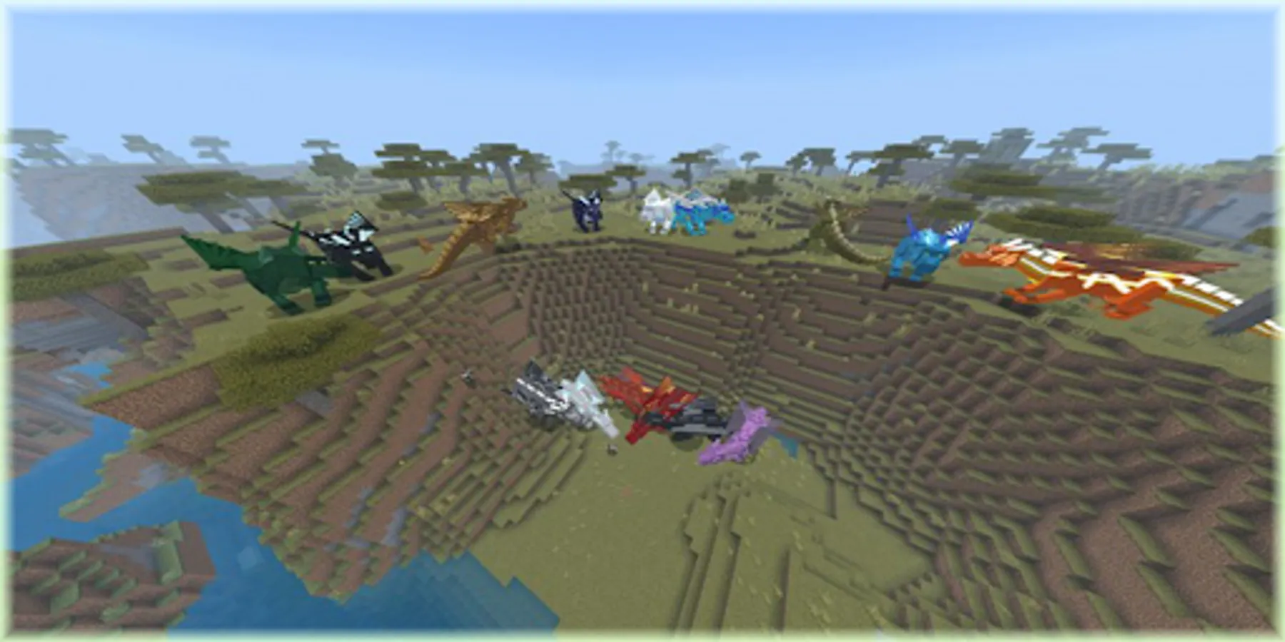 This Minecraft mod is the work of Dragon City in Minecraft Pocket Edition. In this mod, you can ride a dragons and fly through the sky, or you can tame your own dragons to make it your good helper. If you want to play the original Dragon City mod, come on!