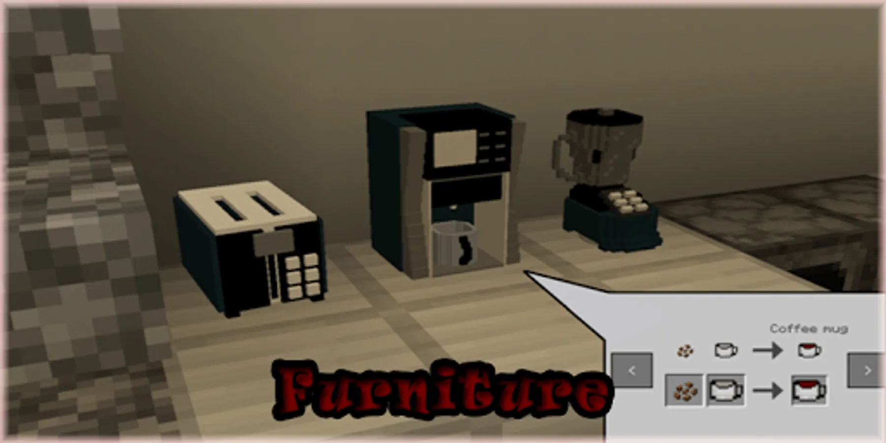 🤗 Furniture decor mods for Minecraft is not an official Minecraft Pocket Edition game product, it is not related or endorsed by Mojang.