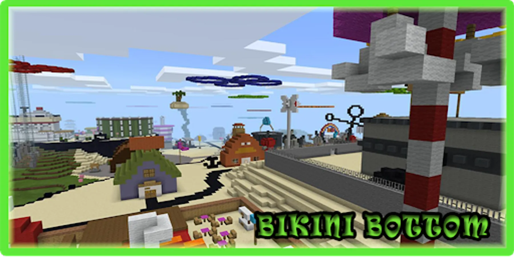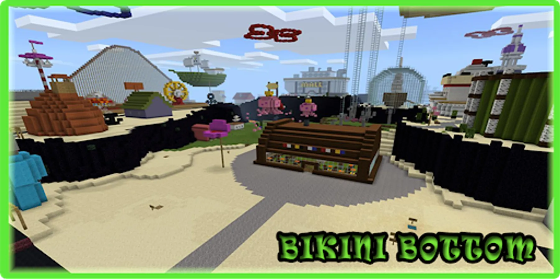 👍 Enter the SpongeBob Games Nickelodeon universe and his friends yourself or with your friends. Bikini Bottom is the city and the main venue for the SpongeBob SquarePants animated series. This map includes everything from animated series, from SpongeBob Games own pineapple house and neighboring houses, to Bikini Bottom Mall. If you have ever watched it on TV Nickelodeon chanel, we can guarantee that you will find a lot in common with this Minecraft Pocket Edition map and it will be very interesting for you to play and spend time.