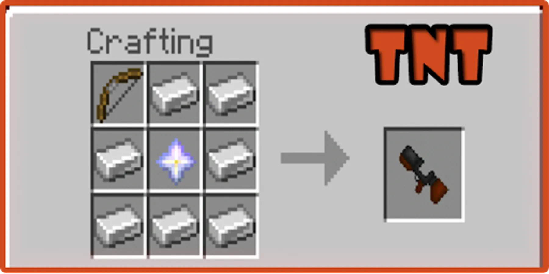 TNT bomb gun mod adds a functional weapon that shoots dynamites TNT bomb to the Minecraft! You can attack your enemies and hated hostile mobs in Minecraft from a long distance! When creating a TNT gun, you will need a Minecraft Underworld star, so before you get the guns you will have to work hard and look for this star.