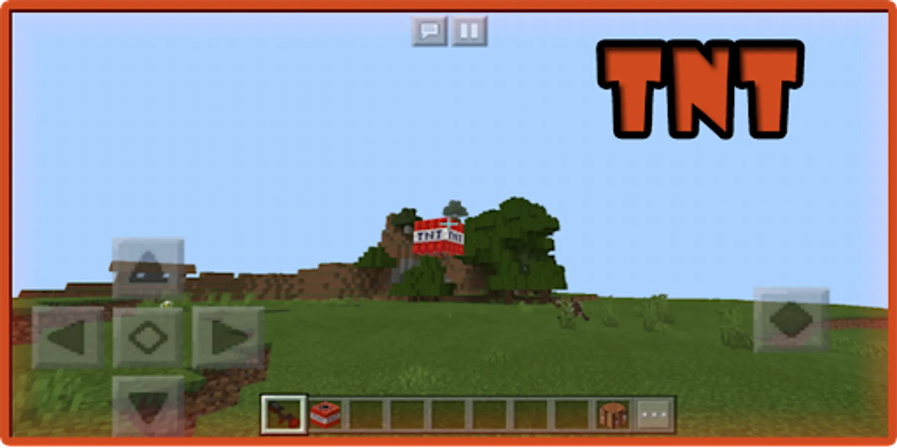 The screenshots show how to create this miracle gun in MCPE, after creating the TNT bomb gun you need to charge it with dynamite, as shown in the screenshot and after the shot you need to reload the bomb gun again.