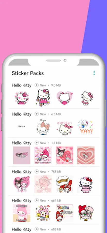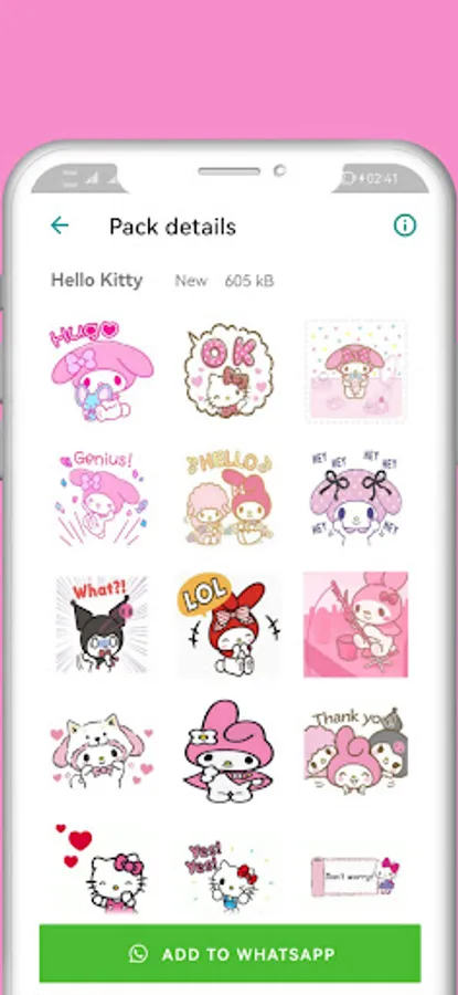 my Melody WAsticker pack includes a wide range of stickers featuring my and Melody in different poses and situations. These stickers showcase the characters' signature expressions, such as their happy and excited faces, as well as their playful and mischievous sides.