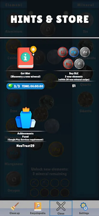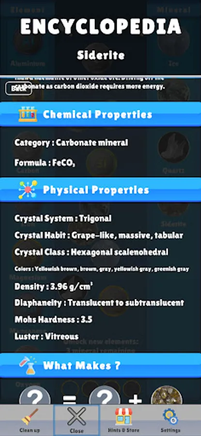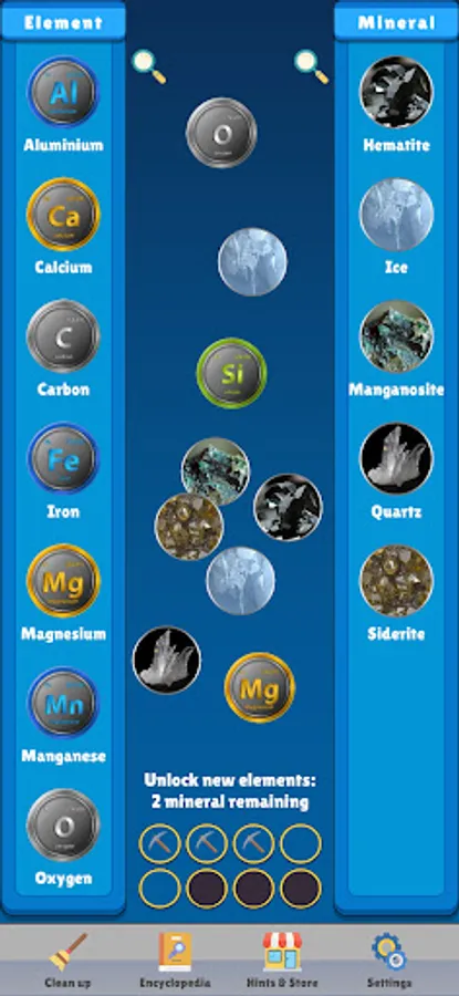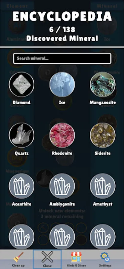 There are 138 different minerals waiting for you, discover them with the help of 50 elements which will be given as you progress through the game.