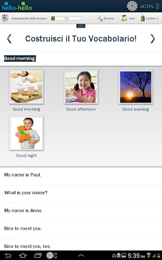 Hello-Hello English is a full-fledged language course with 30 LESSONS developed in collaboration with the American Council on the Teaching of Foreign Languages (ACTFL), so you can be assured that these lessons follow an effective research-based methodology. All lessons are conversational based on realistic dialogues and situations, rather than a collection of out-of-context words and phrases.