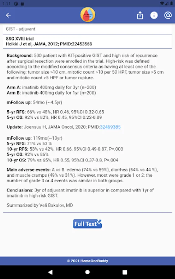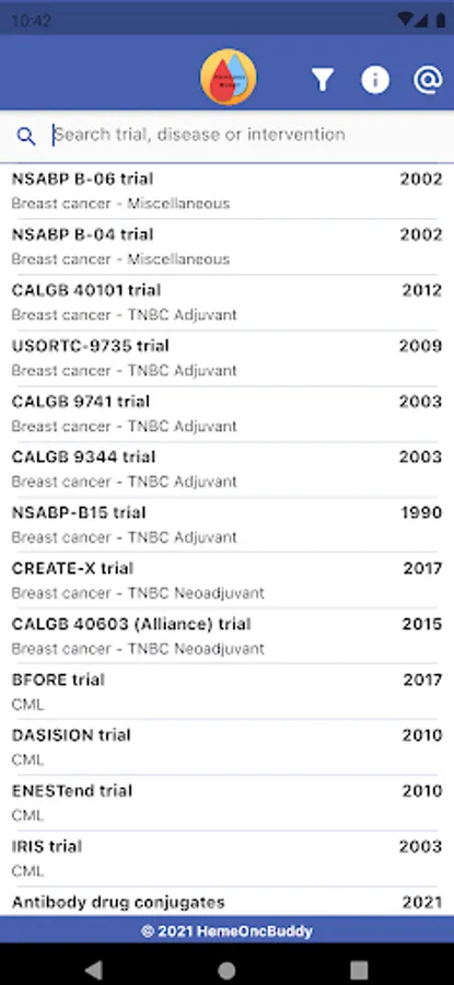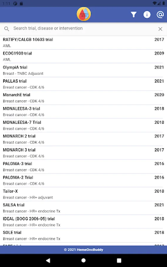 Research in Hematology and Oncology has seen a remarkable growth with a significant amount of treatment advancements in recent years. Keeping up with recent literature has become more challenging. In the HemeOncBuddy app you can find the most important and practice-changing clinical trials in Hematology and Oncology.