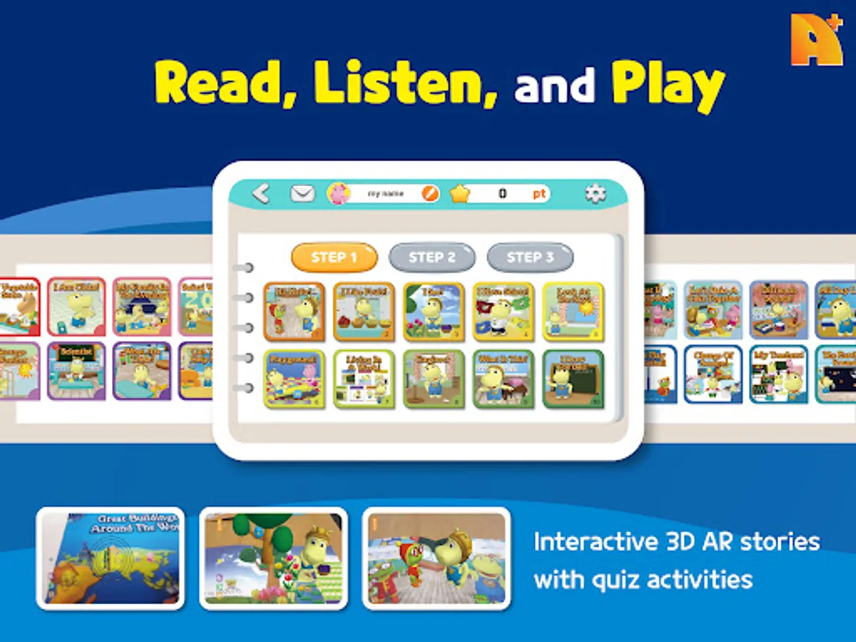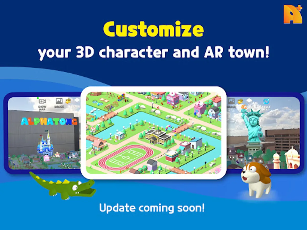 Explore our interactive 3D world to experience cute ABC characters, phonics, coloring, 3D painting, memory games, and an interactive AR town!