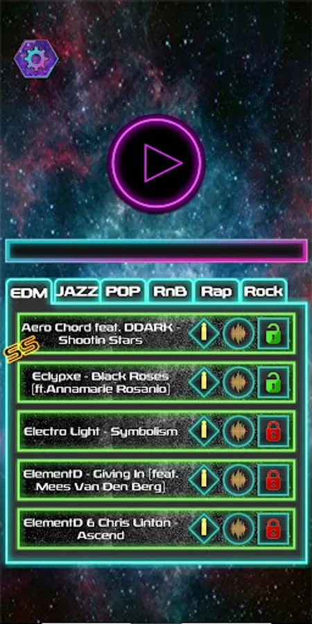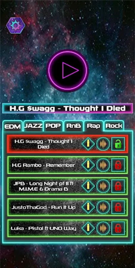 Enjoy music with 6 genres edm, jazz, pop, rnb, rap, rock. Play hard when the tune comes on.