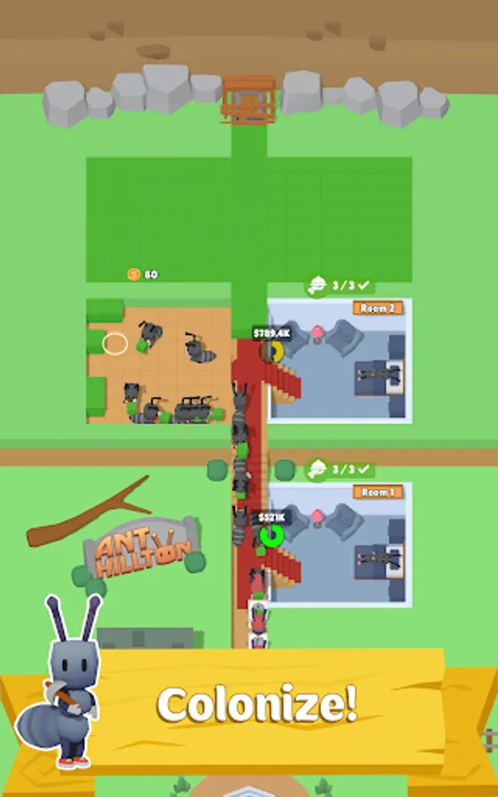 Join the colony of ants building a five-star resort. Dig the ground and create luxurious rooms for your guests.