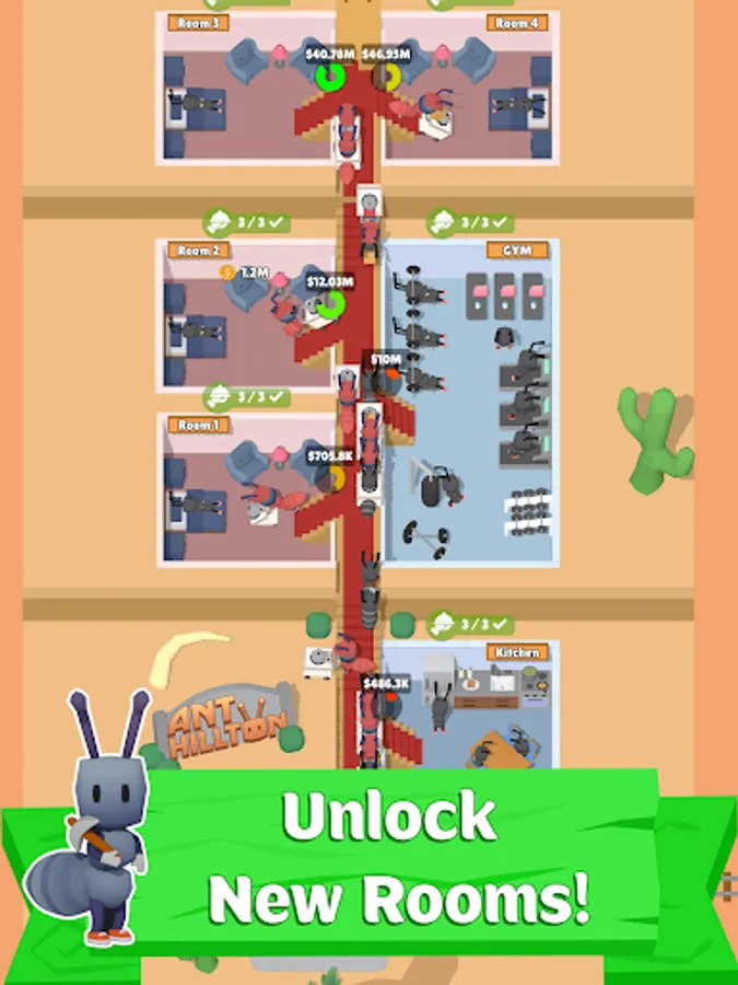 This casual and easy-to-play mobile idle game combines strategy with idle gameplay, allowing you to improve your hotel empire while enjoying the fruits of your labor. Get ready to become the ultimate tourism tycoon in Nice Ants: Anthillton!