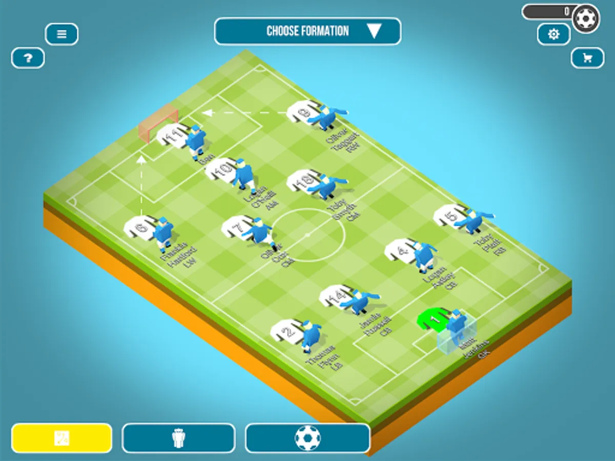 Manage the players and decide on the tactics, then play the matches. Make passes, tackles and score goals!