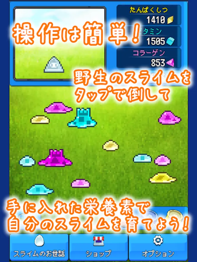 "Use nutrients to level up your slime!"