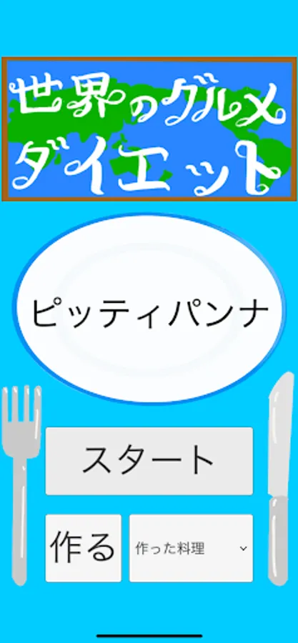 「スタート」ボタンを押すとランダムでレシピを表示します。