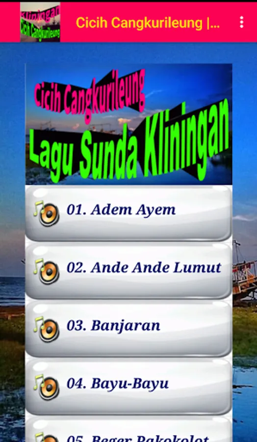 Enjoy the best and most complete collection of Sundanese Klingin Songs from the legendary Sundanese singer, Cicih Cangkurileung. Enjoy the melodious voice of Cicih Cangkurileung in developing classical cliningan songs such as Ande Ande Lumut, Cinta Kapendeum, Neundeun Harepan, Renggong Coyor, Sorong Dayung, Sudah Norma, etc. All songs can still be listened to even without an internet connection. Also can be used as Ringtone, Notification, and alarm.