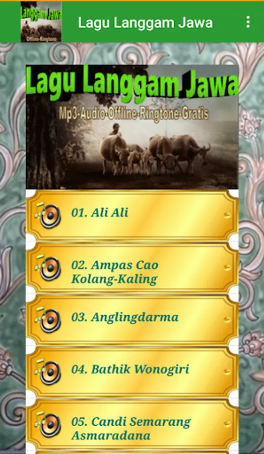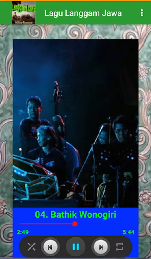 Presented the Javanese song style application for fans of traditional music in the land of Java - especially Central Java. Please install and enjoy the best collection of Javanese langgam songs in the melodious sound of the best pesinden accompanied by keroncong music. Enjoy the most popular Javanese langgam songs like Yen Ing Tawang Ana Lintang, Mbok Ya Eling, Jangkrik Ginggong, Semarang Asmaradana Temple, etc.