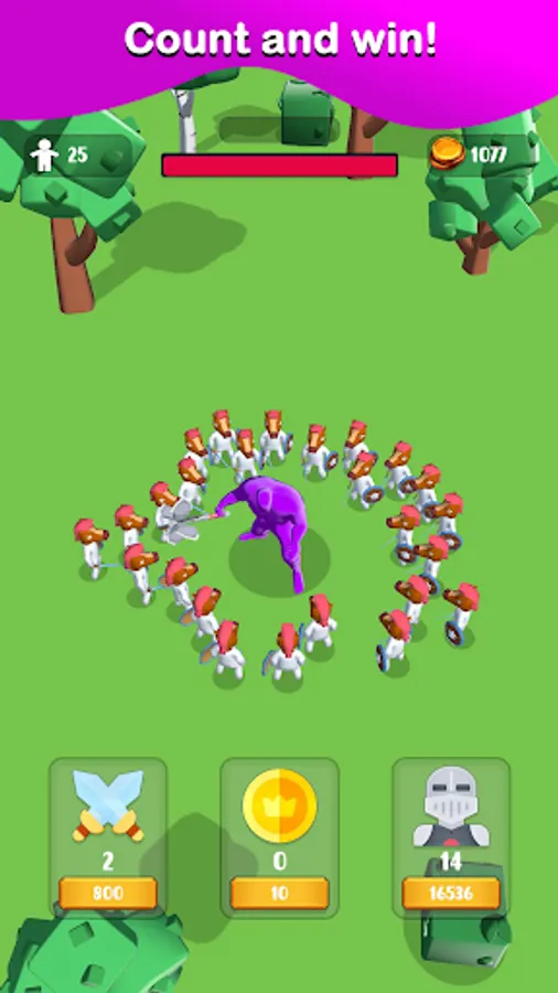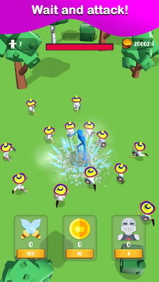 “Count and Attack" is an engaging game where the player controls the stickmen unit attacking the enemy. The game is played on a grid-based battlefield, where the player must strategically wait and attack at the right moment in order to earn coins and boost the units.