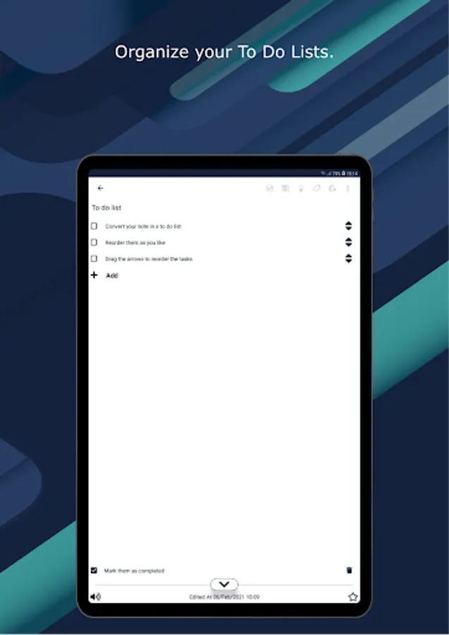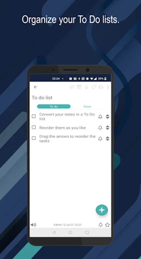 It is easy to create reminders and to organize data in lists. With the checklist you can plan your day with to do list, make tasks list and tick the completed ones.