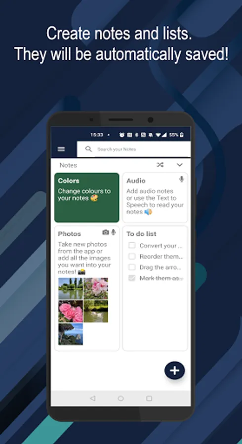 Safe Notes gives you a complete and simple notepad to create text notes, lists and checklists. It saves your inspirations, plans, ideas, contacts, passwords, sensitive information, lists or anything you want to organize or remember and keep them private and yet available.