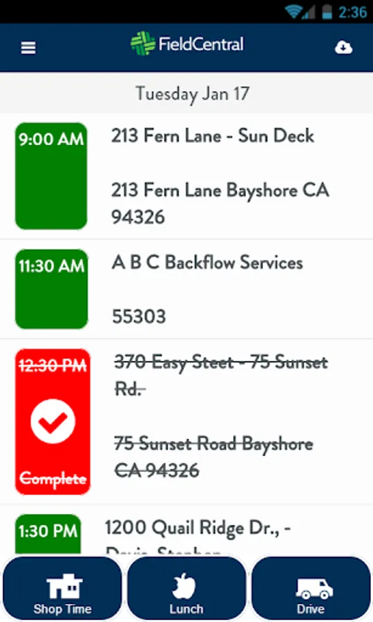 Mark visits as complete and incomplete and indicate what work was completed during each customer visit.