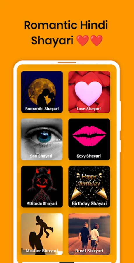 Special features of app: Some of the featured sections of this app are: Love Shayari in Hindi, Love Shayari in Hindi for girlfriend, Shayari love in english, Best shayri for Love, Love Shayari in Hindi Text, Best Shayari, New Shayari, Shayari in English Love shayari in Urdu, Best Shayari in Hindi, Shayari Status, New Hindi Shayari.