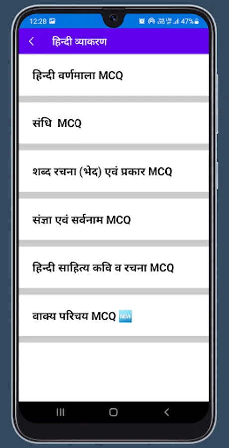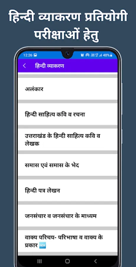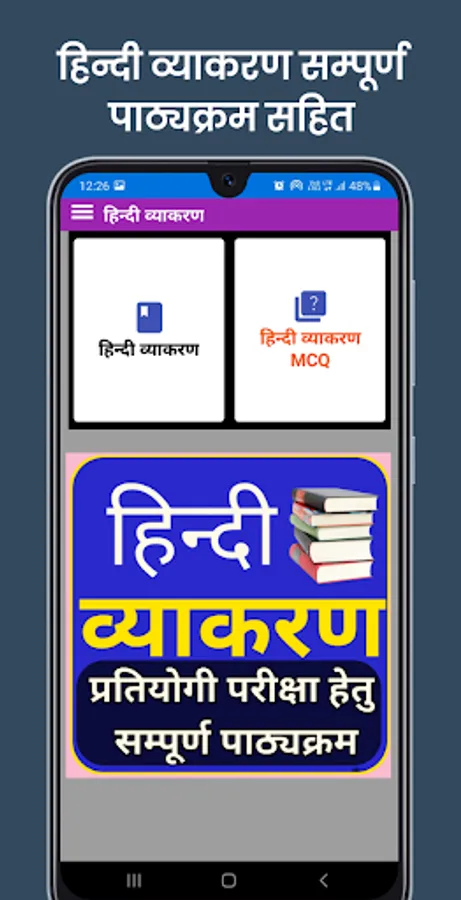 Hindi Grammar application contains important material of hindi grammar details notes and mcq in every topic for the competitive exam based.