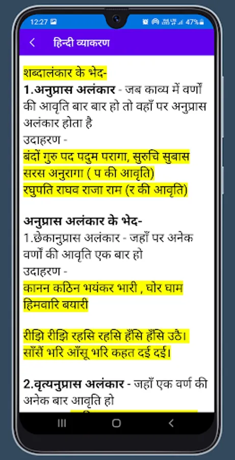 This app is sufficient study material of hindi grammar for all students who want to get commend over hindi subject. Hindi grammar app help you in various Central goverment exam as well as State Government exam. In this application you can learn hindi grammar easy and simple way. Hindi grammar is the important part of many exam where you can get best score. The hindi grammar app is the best tool to improve your hind grammar.