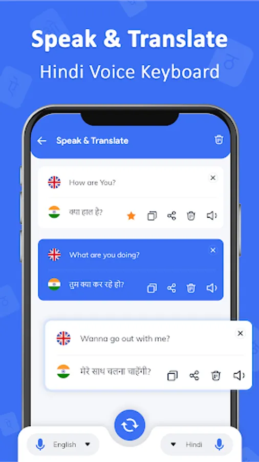 You can change language English to Hindi or Hindi to English from keyboard itself. With Hindi Keyboard typing you can write all Hindi Alphabets, letters and words. English Hindi keyboard is the easiest Hindi keyboard to write in Hindi language. You can use this Hindi key board typing to write in Hindi input. No need to copy and paste Hindi input. This Hindi keyboard app is useful for Hindi speaking and anyone across the world.
